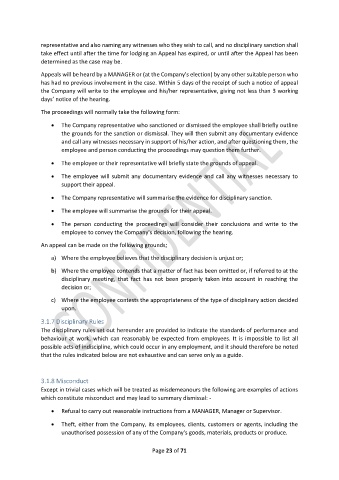 • The Company representative who sanctioned or dismissed the employee shall briefly outline