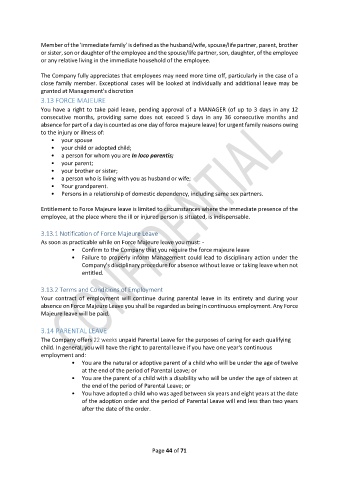 absence for part of a day is counted as one day of force majeure leave) for urgent family reasons owing