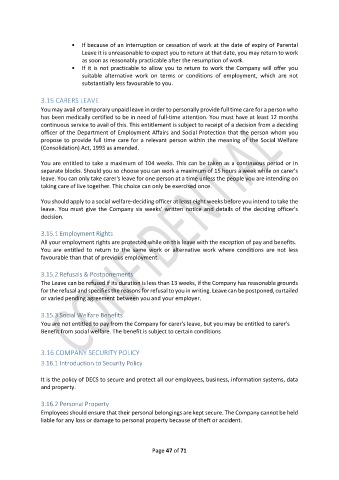 • If because of an interruption or cessation of work at the date of expiry of Parental