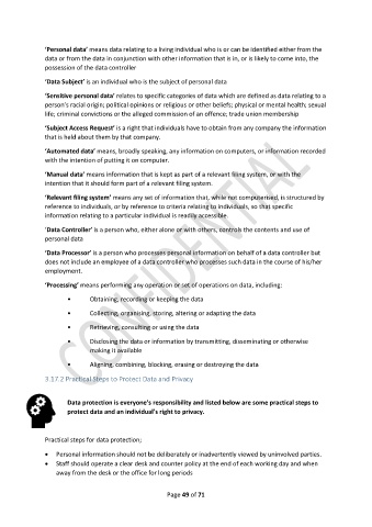 ‘Manual data’ means information that is kept as part of a relevant filing system, or with the