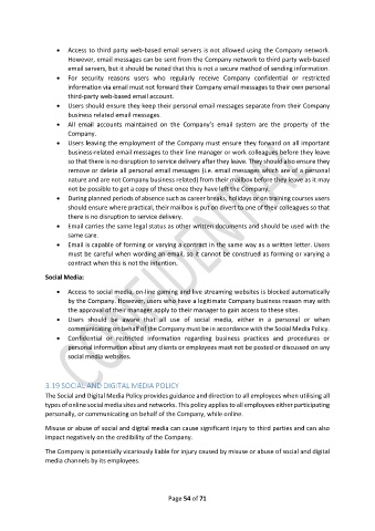 • Access to third party web-based email servers is not allowed using the Company network.