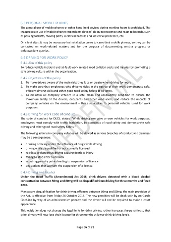 employees must comply with traffic legislation, be conscious of road safety and demonstrate safe