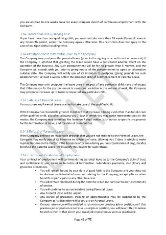 Your contract of employment will continue during parental leave as to the Company's duty of trust