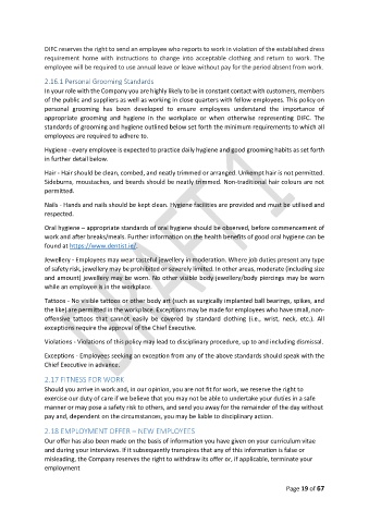 appropriate grooming and hygiene in the workplace or when otherwise representing DIFC. The