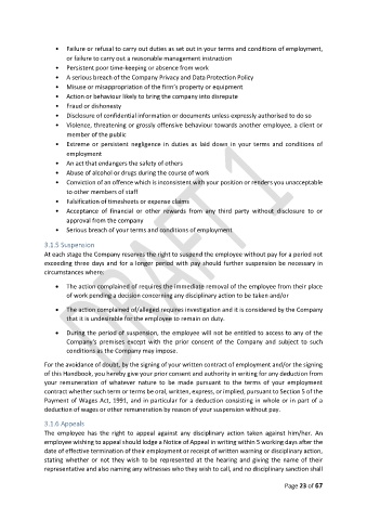 At each stage the Company reserves the right to suspend the employee without pay for a period not