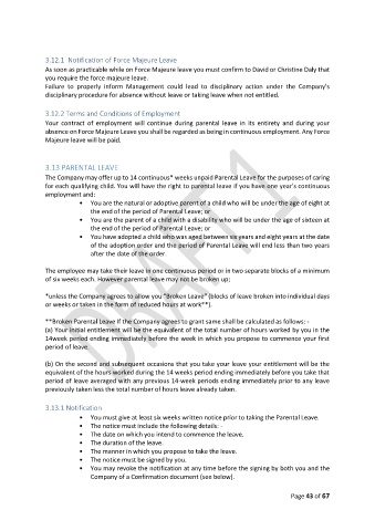 **Broken Parental Leave If the Company agrees to grant same shall be calculated as follows: -