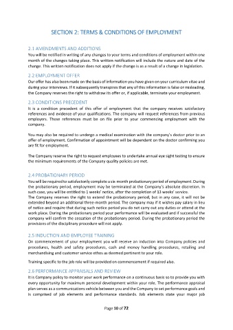 SECTION 2: TERMS & CONDITIONS OF EMPLOYMENT