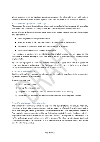 employee will be informed and where this decision is to dismiss the employee will be informed that