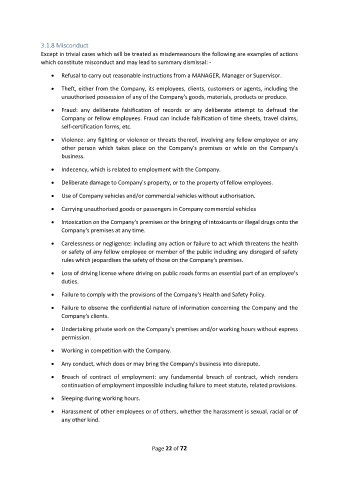 • Failure to comply with the provisions of the Company's Health and Safety Policy.