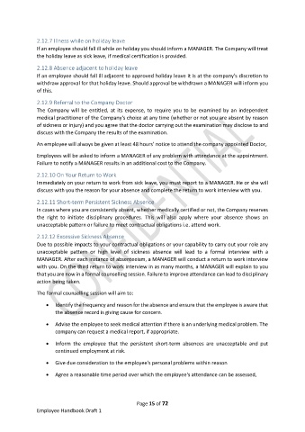 • Inform the employee that the persistent short-term absences are unacceptable and put