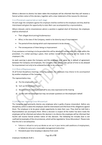 employee will be informed and where this decision is to dismiss the employee will be informed that
