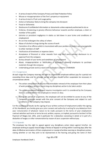 At each stage the Company reserves the right to suspend the employee without pay for a period not