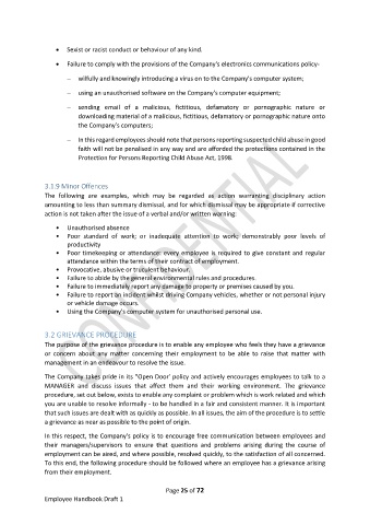 • Failure to comply with the provisions of the Company's electronics communications policy-