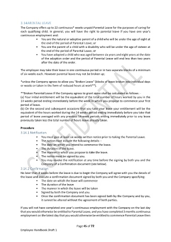 **Broken Parental Leave If the Company agrees to grant same shall be calculated as follows: -