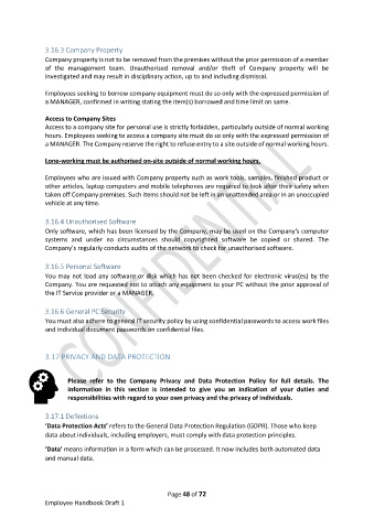 of the management team. Unauthorised removal and/or theft of Company property will be