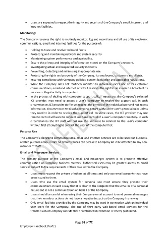 • While the Company does not routinely monitor an individual user’s use of its electronic