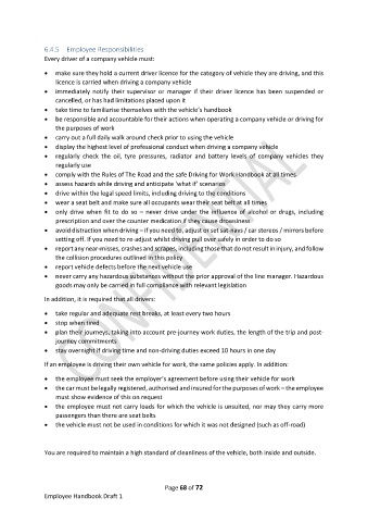 • comply with the Rules of The Road and the safe Driving for Work Handbook at all times