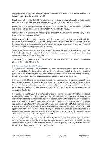 Consequently, EQA takes any misuse or abuse of social and digital media by Assessors very seriously