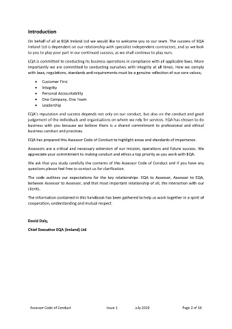 We ask that you study carefully the contents of this Assessor Code of Conduct and if you have any
