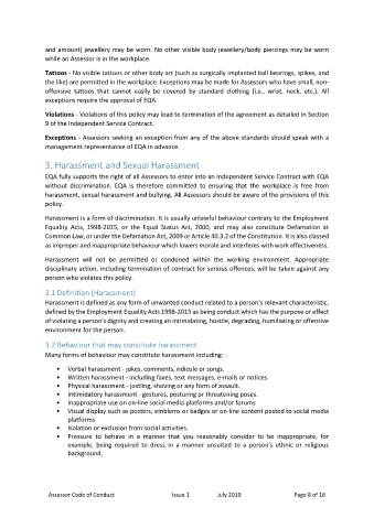 harassment, sexual harassment and bullying. All Assessors should be aware of the provisions of this