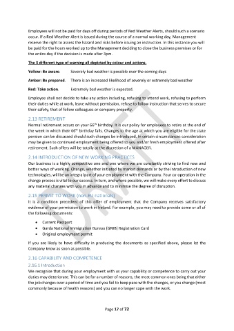 occur. If a Red Weather Alert is issued during the course of a normal working day, Management