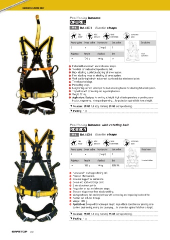 + Fall arrest harness with elastic shoulder straps.