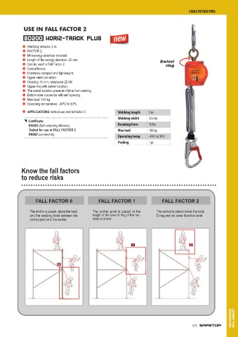 + APPLICATIONS Vertical use and fall factor 2. Webbing length 2 m