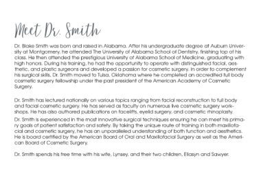 Dr. Smith has lectured nationally on various topics ranging from facial reconstruction to full body