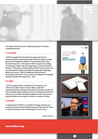 Ir-rappreżentat tal-MCVS is-Sur Robert Farrugia Membru tal- tal- Kunsill ġie intervistat fuq TVM fil-programm “Ras imb Ras” dwar is-Settur Volontarju matul il-Pandemija tal-Corona Virus (ikompli f ’paġna 4)