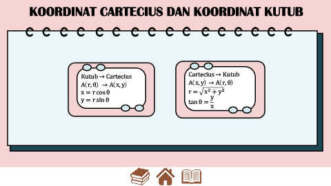 KOORDINAT CARTECIUS DAN KOORDINAT KUTUB Kutub → Cartecius Cartecius → Kutub A r, θ → A x, y A x, y → A r, θ 2 x = r cos θ r = x + y 2 y = r sin θ tan θ = y x