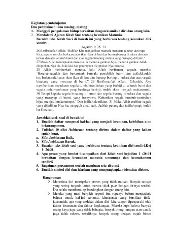 2. Mendalami Ajaran Kitab Suci tentang keunikan Manusia.