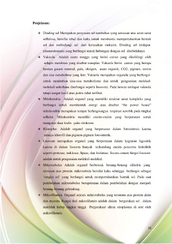 molekul sederhana (berfungsi seperti lisosom). Pada hewan terdapat vakuola
