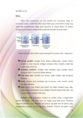 Namun Ada juga faktor faktor yang memengaruhi kecepatan difusi, diantaranya: