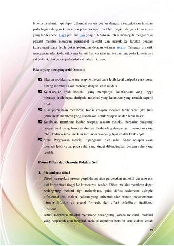 dari konsentrasi tinggi ke konsentrasi rendah. Difusi melalui membran dapat