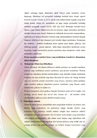 khusus yang terlarut dalam serta ion-ion tertentu, dapat menembus membran
