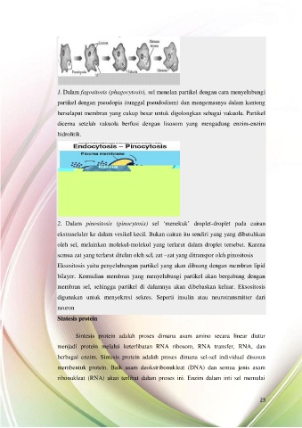 1. Dalam fagositosis (phagocytosis), sel menelan partikel dengan cara menyelubungi