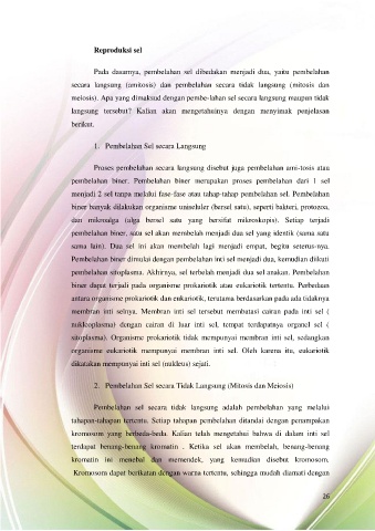 meiosis). Apa yang dimaksud dengan pembe-lahan sel secara langsung maupun tidak