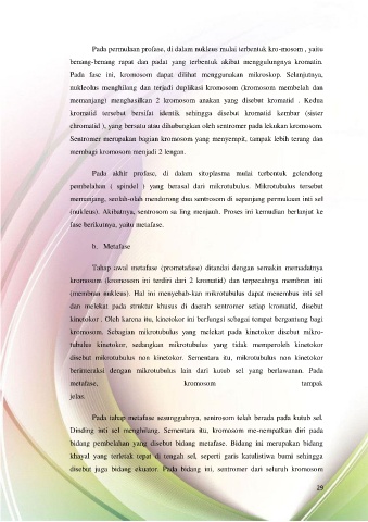 Pada permulaan profase, di dalam nukleus mulai terbentuk kro-mosom , yaitu