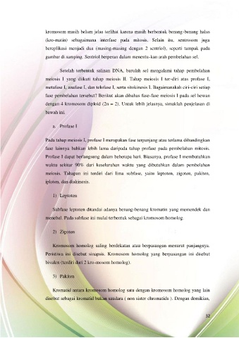 (kro-matin) sebagaimana interfase pada mitosis. Selain itu, sentrosom juga