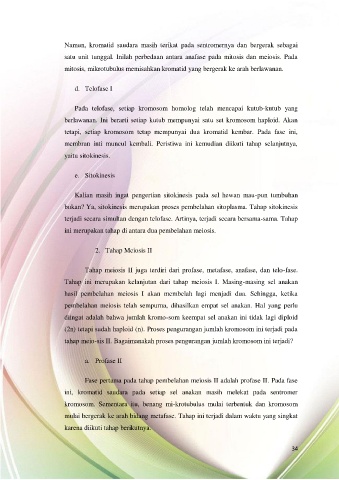 ini, kromatid saudara pada setiap sel anakan masih melekat pada sentromer