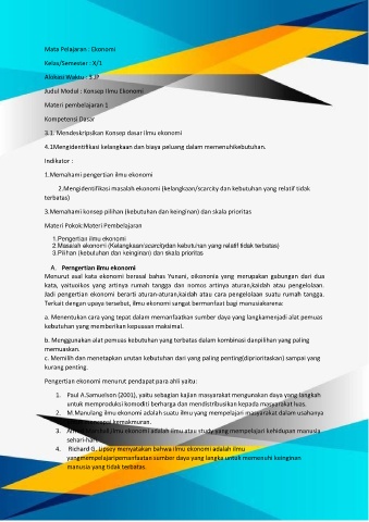 3.1. Mendeskripsikan Konsep dasar ilmu ekonomi