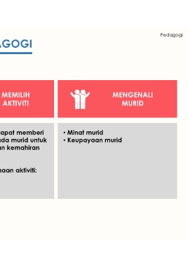 Bersesuaian dengan objektif yang • Aktiviti yang dapat memberi • Minat murid