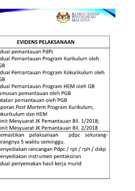 sistematik. • Jadual Pemantauan Program HEM oleh GB