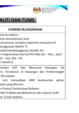 2.2.1 Aset alih dan aset tak • Mesyuarat 4x setahun