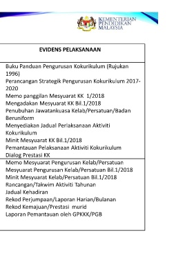 3.2.1.1 Pelaksanaan kokurikulum • Buku Panduan Pengurusan Kokurikulum (Rujukan