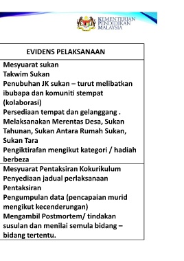 dan terancang. 3. Penubuhan JK sukan – turut melibatkan