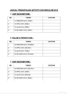 JADUAL PEMANTAUAN AKTIVITI KOKURIKULUM 2018