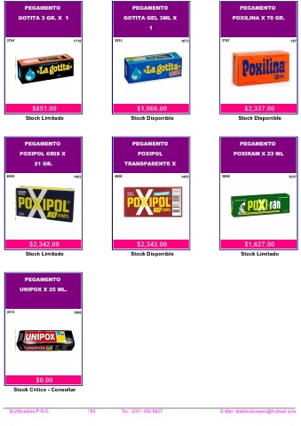 Distribuidora P.R.O. 183 Tel.: 0351-458-8927 E-Mail: distribuidorapro@hotmail.com