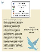 Kristen was inducted into the Young Speakers Guild with the Institute for Cultural Communicators. She received 1st place for Young Speakers Guild award at an Institute for Cultural Communicators Forensic Society Tournament. She was invited to compete at National Institute for Cultural Communicators Forensic Society Tournaments. Kristen is currently ranked 96% in the US and 98% in Louisiana for ACT score. She has served on Area Student Leader Council team with the Institute for Cultural Communicators the past two years. She also has served on children's church team at local church throughout middle school and high school, and