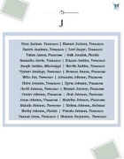 Evan Jackson. Tennessee | Hannah Jackson, Tennessee Camrie Jacobson, Tennessee | Levi Jaeger, Tennessee Tatum James, Tennessee | Seth Janabet, Florida Samantha Jarvis, Tennessee | Eleanor Jenkins, Tennessee Joseph Jenkins, Mississippi | Merritt Jenkins, Tennessee Tymber Jennings, Tennessee | Brennen Jensen, Tennessee Erika Job, Tennessee | Alexandra Johnson, Tennessee Claire Johnson, Tennessee | Cyrus Johnson, Tennessee David Johnson, Tennessee | Hannah Johnson, Tennessee Hunter Johnson, Tennessee | Jireh Johnson, Tennessee Jonas Johnson, Tennessee | Madeline Johnson, Tennessee Mahalia Johnson, Tennessee | Melissa Johnson, Alabama Shelby Johnson, Florida | Victoria Johnson, Tennessee Hannah Jones, Tennessee | Shannon Jorgensen, Tennessee